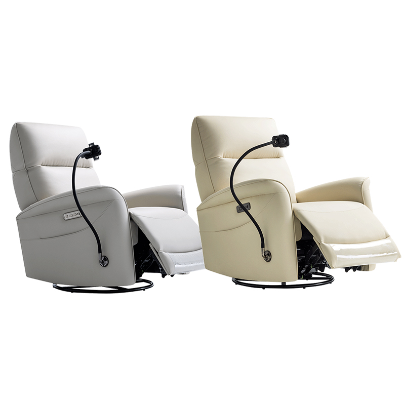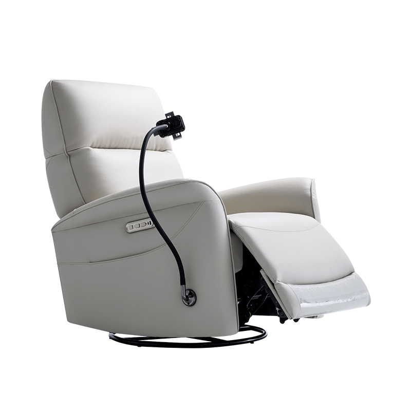 Sự “đa năng” của ghế sofa 8H B12 không chỉ dừng lại ở việc ngả lưng mà còn thể hiện qua khả năng chuyển động cơ học đầy ấn tượng. Ghế cho phép người dùng lắc lư qua lại trong biên độ 30° và xoay tròn trái phải lên đến 270°. Chức năng lắc lư 30° (về phía trước và phía sau) mang lại cảm giác thư giãn nhẹ nhàng, đồng thời hỗ trợ các hành động tức thời. Bạn có thể dễ dàng nghiêng người về phía trước để nhặt một vật dụng trên bàn hoặc ngả nhẹ về phía sau để cổ vũ khi xem một trận thể thao kịch tính. Chuyển động này luôn được duy trì một cách ổn định và an toàn.