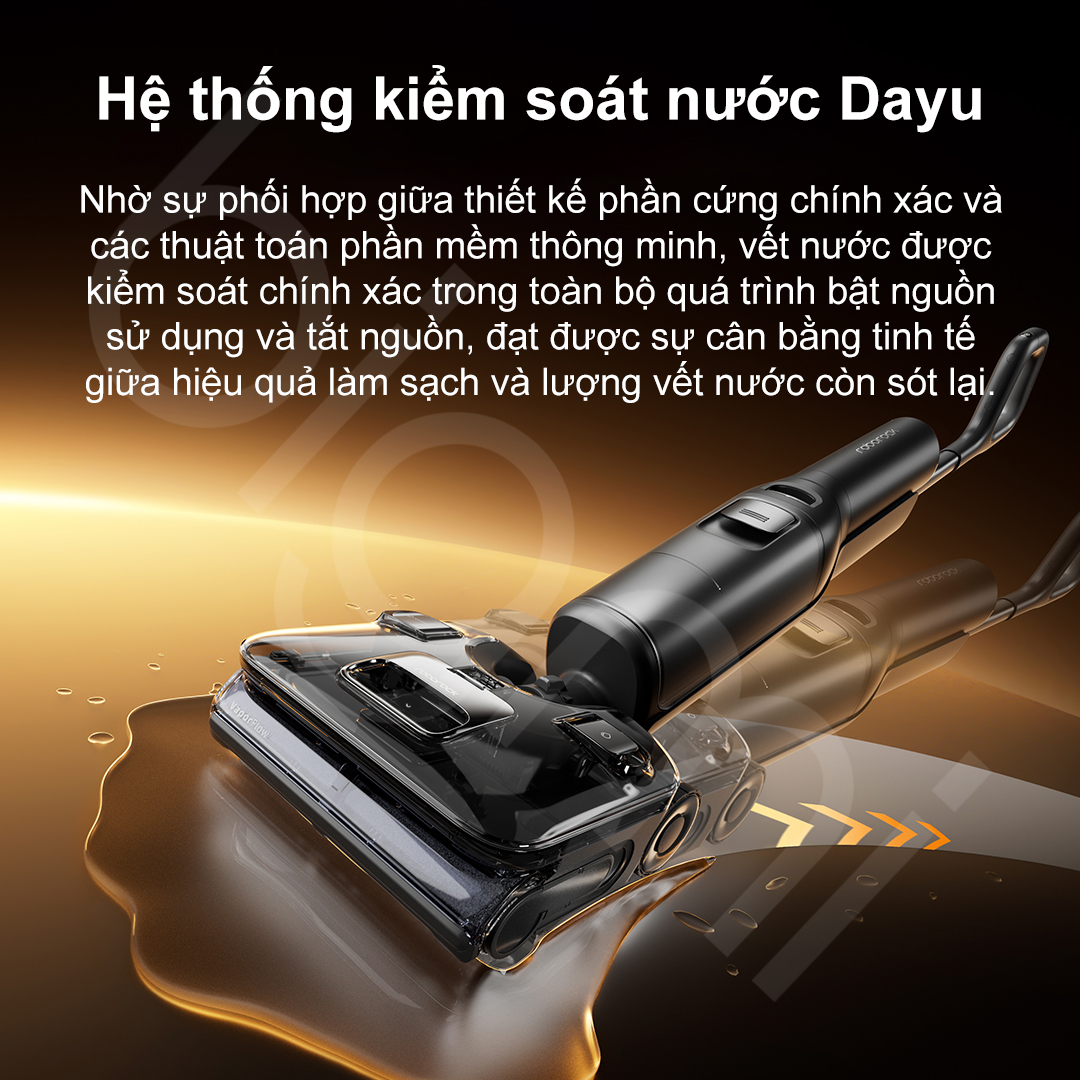 Để hỗ trợ làm sạch diện tích lớn, F25 Ultra Combo sở hữu bình nước sạch dung tích thực tế 1000ml (1L) và bình nước thải 720ml. Kết hợp với đó là hệ thống kiểm soát nước Đại Vũ (Dayu) tinh vi, giúp làm ướt đều con lăn và thu hồi nước thải bằng áp suất âm mạnh mẽ. Đặc biệt, tính năng tự động lùi và lau khô khi tắt máy đảm bảo sàn nhà khô ráo ngay lập tức, không để lại vệt nước hay gây trơn trượt. F25 Ultra Combo còn được trang bị ngăn chứa dung dịch làm sạch 100ml với khả năng tự động pha trộn theo tỷ lệ chuẩn, giúp người dùng sử dụng thoải mái trong 30 ngày chỉ với một lần đổ đầy.