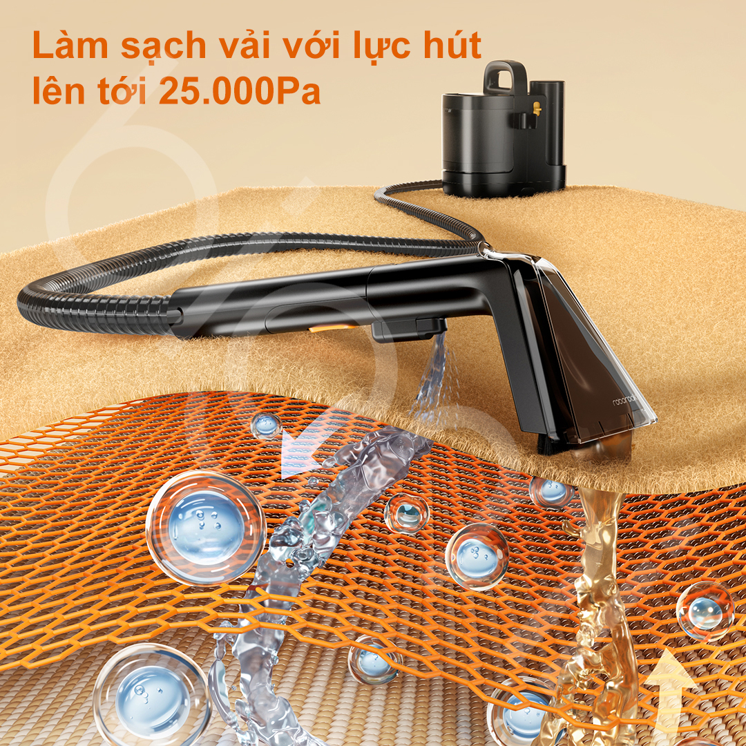 Nếu bạn chọn mua thêm bộ phụ kiện giặt vải, Roborock F25 Ultra Combo sẽ trở thành một chiếc máy giặt thảm và sofa cầm tay vô cùng chuyên nghiệp,. Thiết bị sử dụng quy trình 4 bước khép kín: