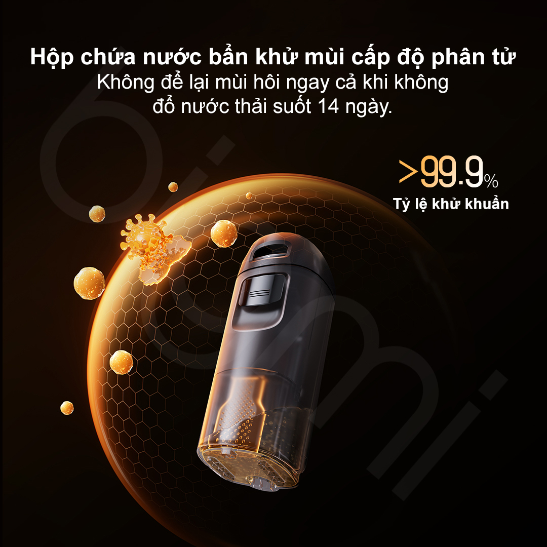Bình chứa nước thải trên F25 Ultra Combo được tích hợp mô-đun khử mùi phân tử chủ động, giúp khóa chặt và phân hủy nguồn gây mùi hôi. Công nghệ này cho phép người dùng bận rộn có thể quên đổ nước thải trong suốt 14 ngày mà máy vẫn không phát sinh mùi khó chịu hay vi khuẩn, đảm bảo an toàn tuyệt đối cho không gian sống.