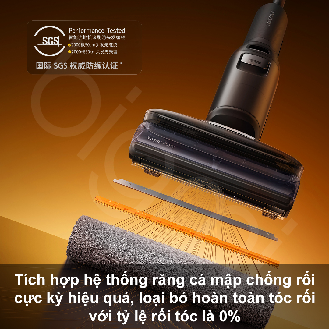 Tóc và lông thú cưng quấn vào con lăn luôn là nỗi ám ảnh, nhưng máy hút bụi lau nhà Roborock F25 Ultra Combo đã khắc phục hoàn toàn nhờ hệ thống Double Comb (Răng lược kép). Hệ thống gồm 141 răng lược mật độ dày đặc, được chế tạo từ vật liệu cao cấp, liên tục chải và gỡ rối tóc ngay từ nguồn phát, thử nghiệm thực tế cho thấy F25 Ultra Combo xử lý mượt mà 2.000 sợi tóc dài tới 50cm, đưa thẳng chúng vào ngăn chứa rác mà không cần người dùng phải gỡ thủ công, đạt tỷ lệ rối 0%.