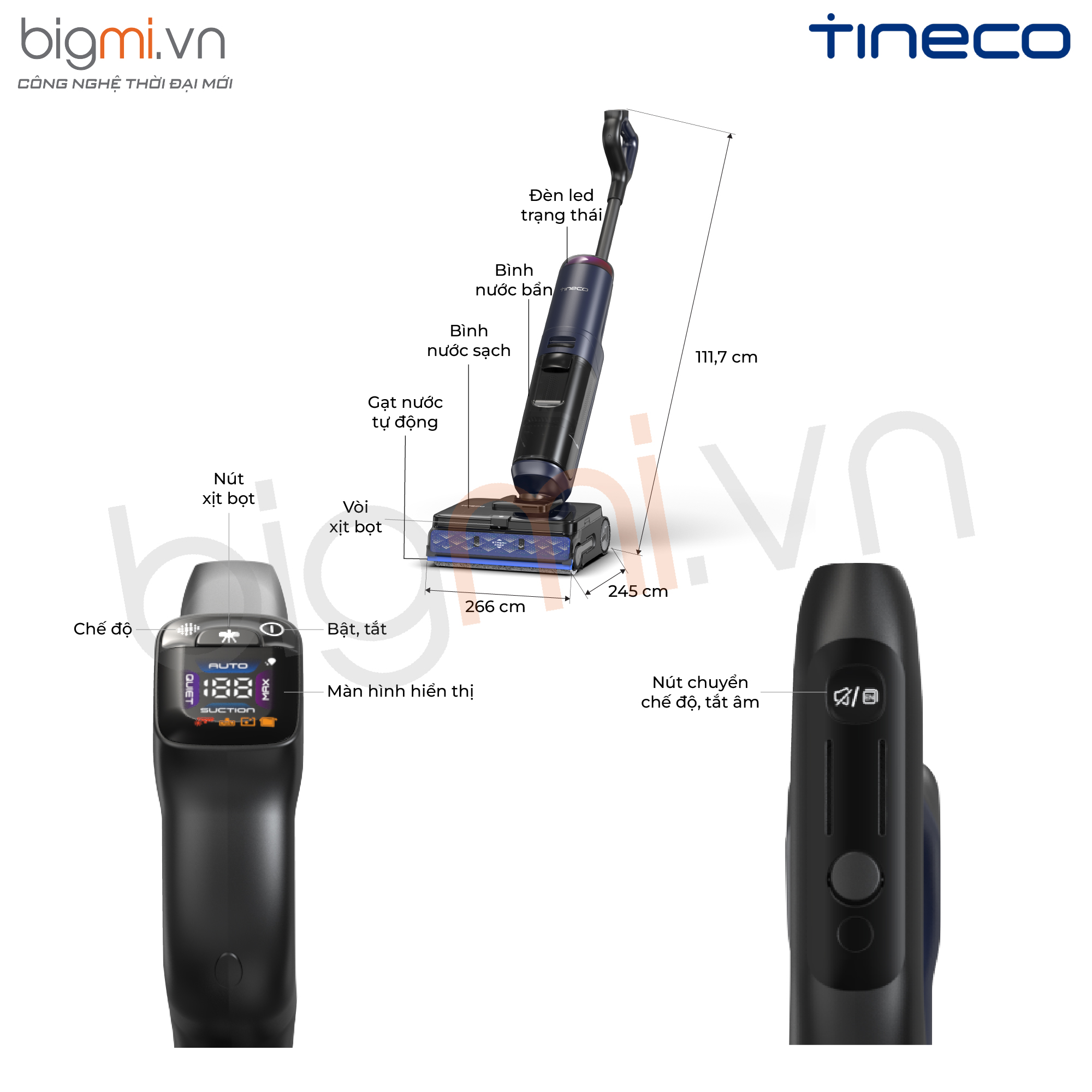 - Công nghệ Tineco MHCBS: Làm sạch con lăn liên tục.