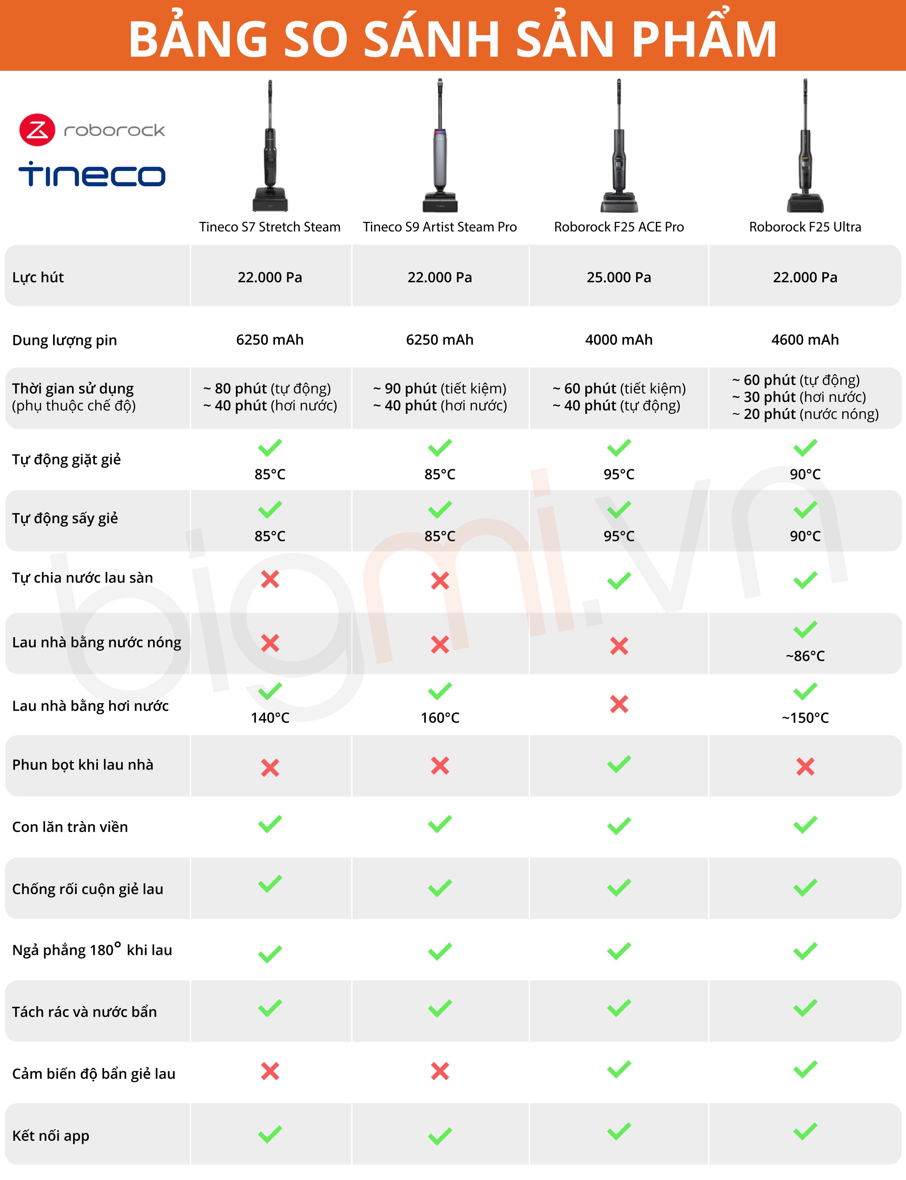 So sánh các máy hút bụi lau sàn Roborock F25 Series