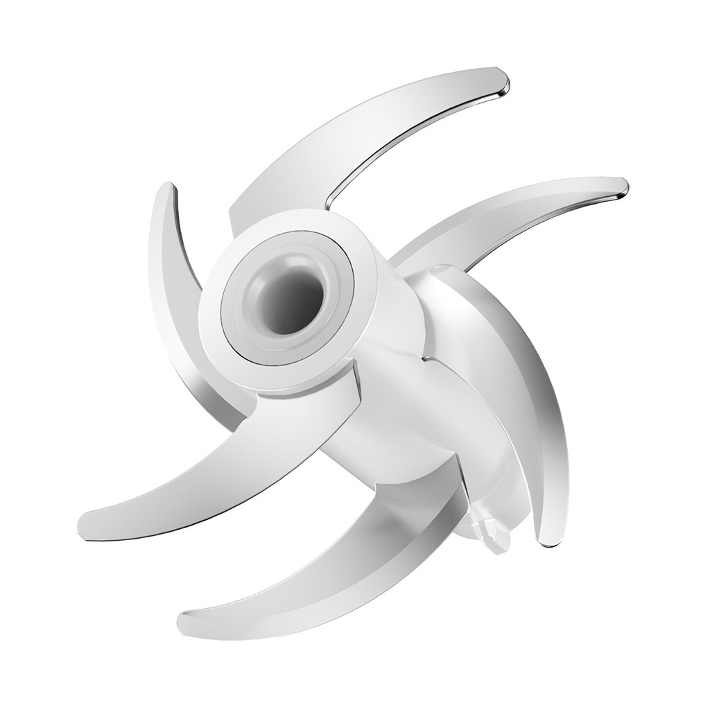 Phần cán dao (trục xoay) bao bọc bên ngoài cốt thép được đúc từ nhựa PP (Polypropylene) đạt chuẩn an toàn thực phẩm. Nhựa PP có đặc tính dẻo dai, chịu được va đập tốt và kháng hóa chất. Việc sử dụng nhựa PP tại vị trí này giúp giảm trọng lượng của bộ dao, đồng thời giảm ma sát nhiệt trong quá trình quay tốc độ cao. Vật liệu này cũng ngăn chặn hiện tượng thôi nhiễm vi nhựa vào thực phẩm, đảm bảo tiêu chuẩn vệ sinh khắt khe cho hệ tiêu hóa non nớt của trẻ.