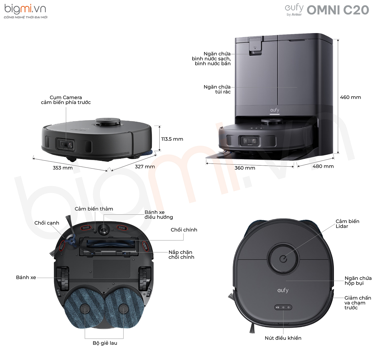 Kích thước robot hút bụi Eufy X10 Pro Omni