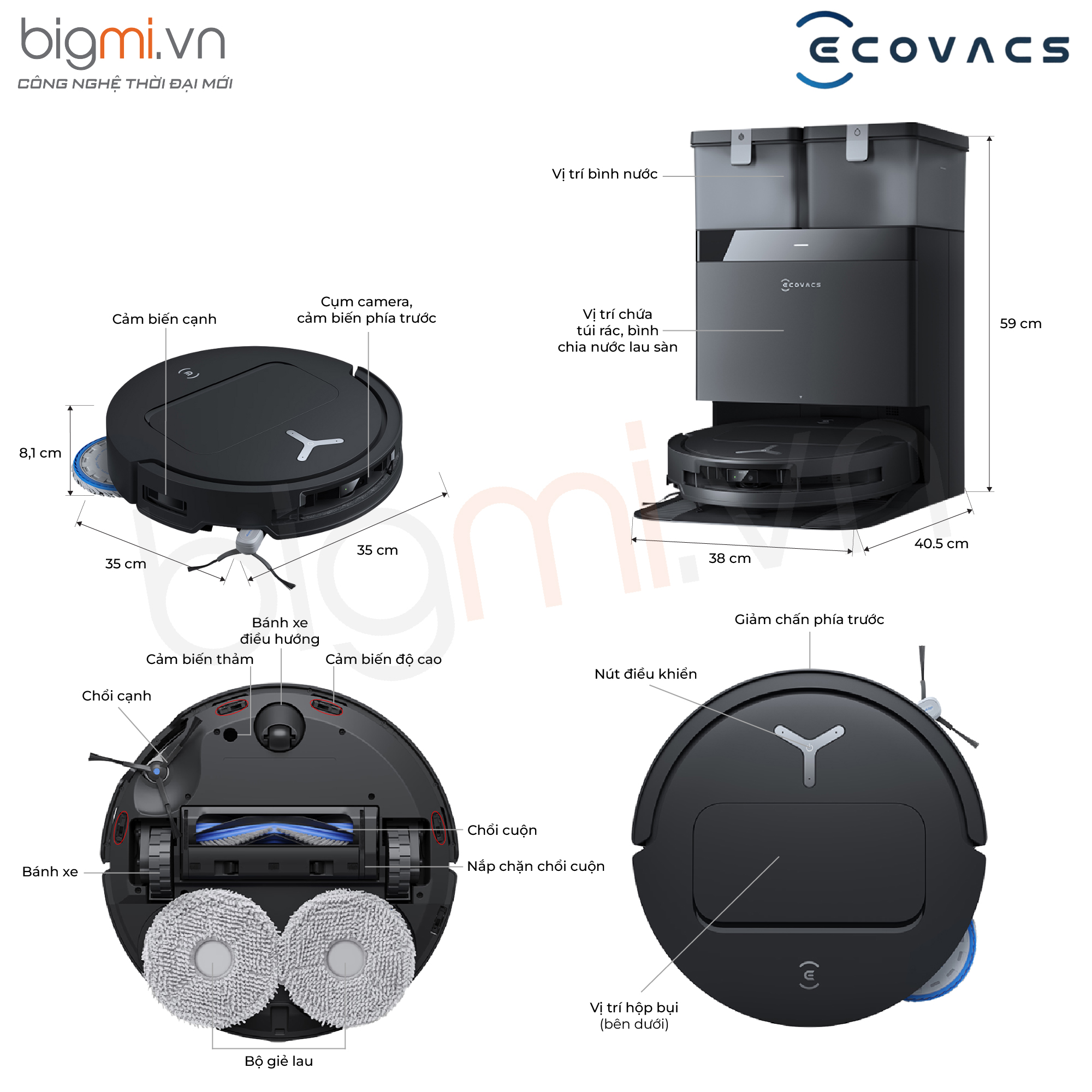- Kết nối và điều khiển linh hoạt qua App EcovacsHome.