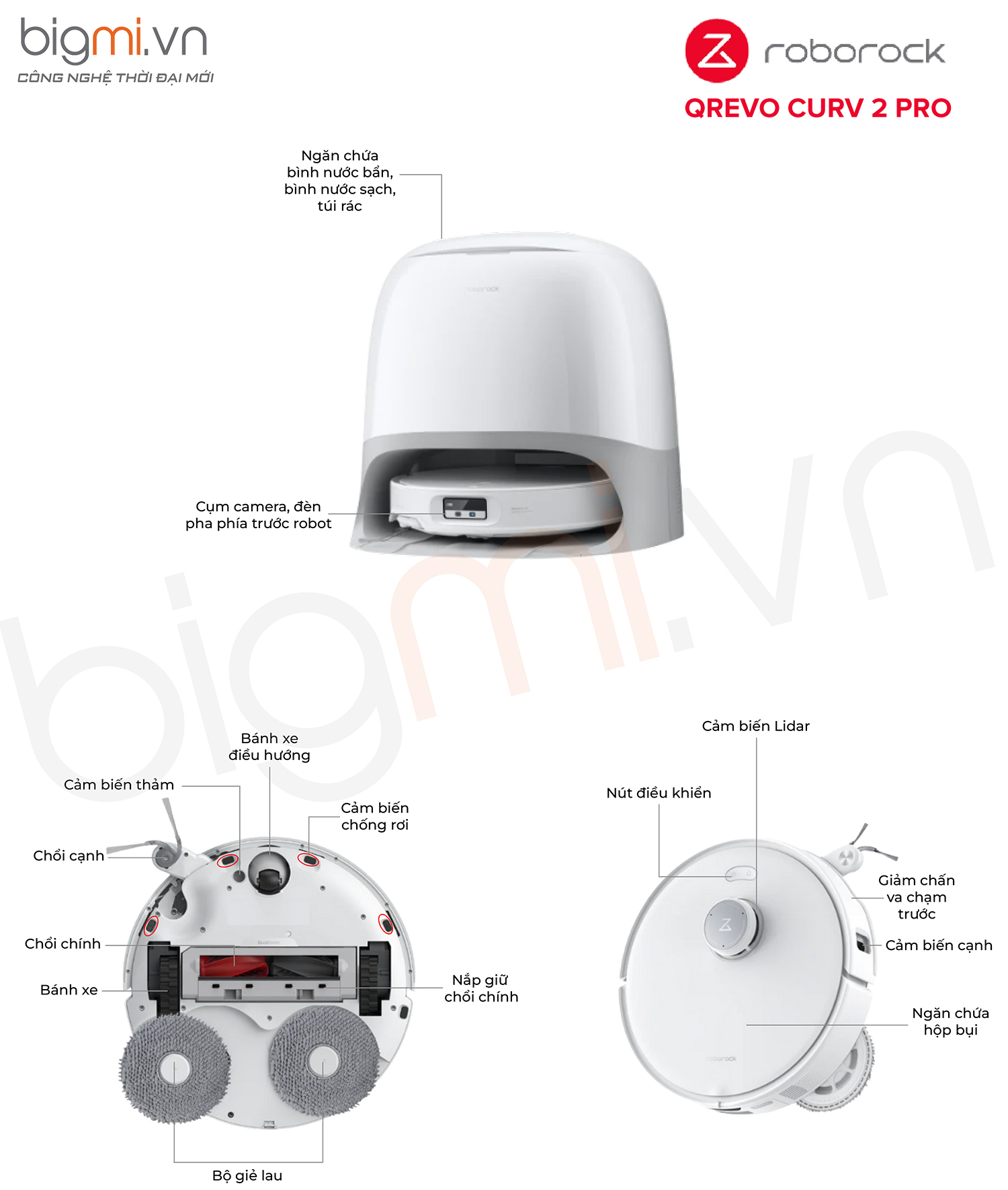Các tính năng trên robot hút bụi lau nhà Roborock Qrevo Curv 2 Pro