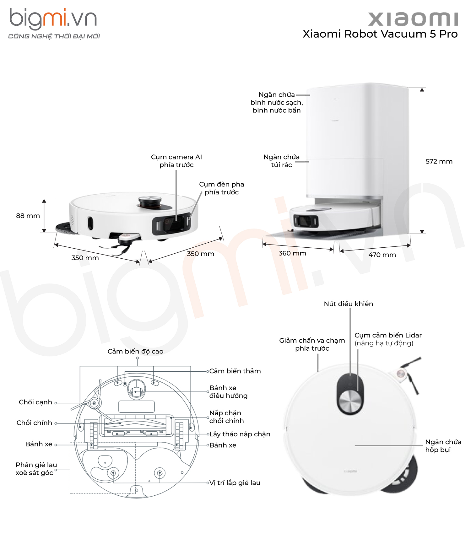 Robot hút bụi lau nhà Xiaomi Vacuum 5 Pro OV21GL 2025 – Quốc tế